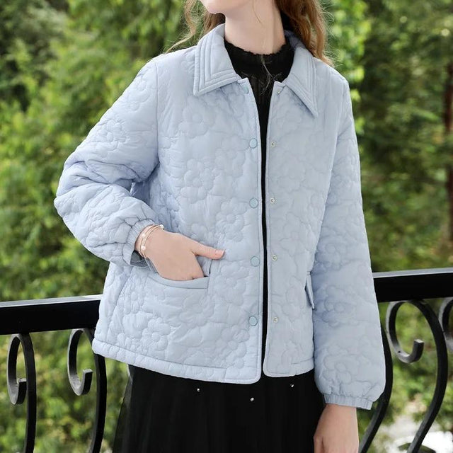 Entra en el invierno con confianza y estilo con este elegante abrigo de algodón azul para mujer. Diseñado tanto para uso casual como de oficina, este abrigo corto combina calidez y sofisticación sin esfuerzo. Confeccionado con algodón de alta calidad, ofrece una sensación suave, transpirable y duradera, manteniéndote cómoda durante los fríos días de otoño e invierno. Su color azul liso y su diseño holgado de cintura ancha lo convierten en una pieza versátil para cualquier guardarropa, mientras que el clásico cuello vuelto y el cierre de botonadura sencilla agregan un toque de elegancia atemporal. Este abrigo es perfecto para la mujer moderna que valora tanto la comodidad como el estilo. Ya sea que vayas a la oficina o a reunirte con amigos, esta chaqueta es tu prenda de abrigo ideal para las estaciones más frías. Con una combinación equilibrada de estilo informal y profesional, te permite mantenerte abrigada sin sacrificar tu sentido de la moda.