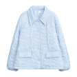 ¡No dejes que el frío te arruine el estilo! Este abrigo de algodón azul es una prenda imprescindible para cualquiera que quiera abrigarse y mantener un estilo sofisticado. Su combinación de comodidad informal y elegancia para la oficina lo hace perfecto para la mujer moderna y ocupada. ¡Agrega este abrigo versátil a tu guardarropa de invierno hoy y disfruta del equilibrio perfecto entre comodidad, calidez y elegancia!