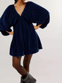 Vestido mini retro de terciopelo con escote en V y mangas abullonadas