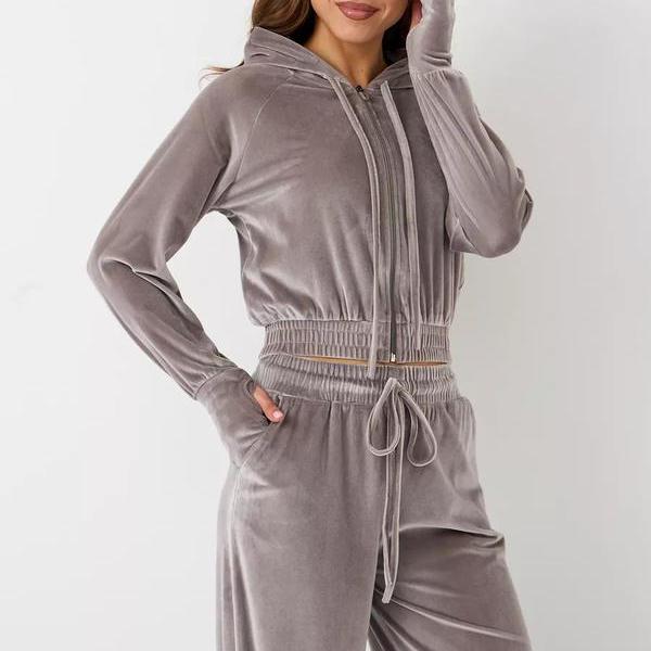 Envuélvete en comodidad y estilo esta temporada con nuestro conjunto deportivo informal de terciopelo de dos piezas para mujer. Diseñado para otoño e invierno, este conjunto combina la moda sencilla con la calidez acogedora que necesitas. La tela de terciopelo suave se siente lujosa en tu piel, mientras que el diseño deportivo pero elegante te mantiene con un aspecto fresco y a la moda. Ya sea que estés haciendo recados, descansando en casa o saliendo para un día informal con amigos, este conjunto versátil te garantiza que lo harás todo con estilo.Características principales del conjunto de dos piezas de terciopelo