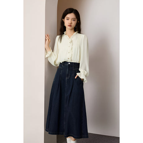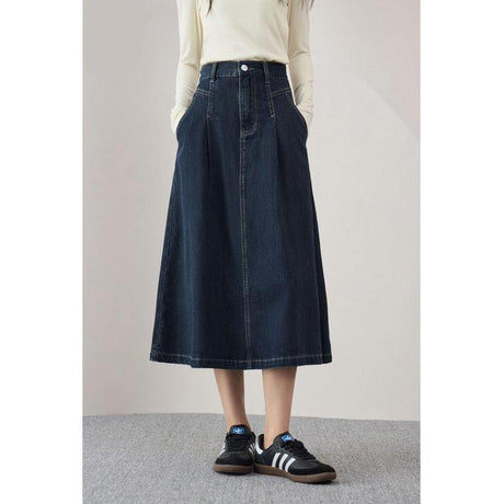 Precio normal $161.99 USDPrecio unitario /AgotadoFalda midi elegante de mezclilla oscu...