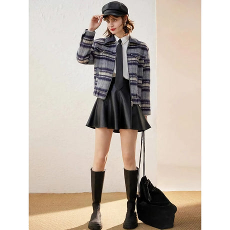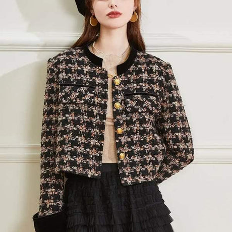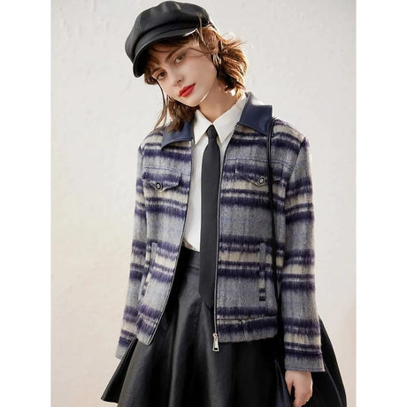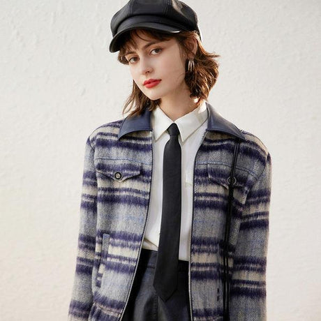 Precio normal $166.99 USDPrecio unitario /AgotadoChaqueta vintage de cuadros con cuell...