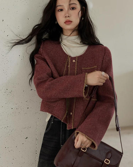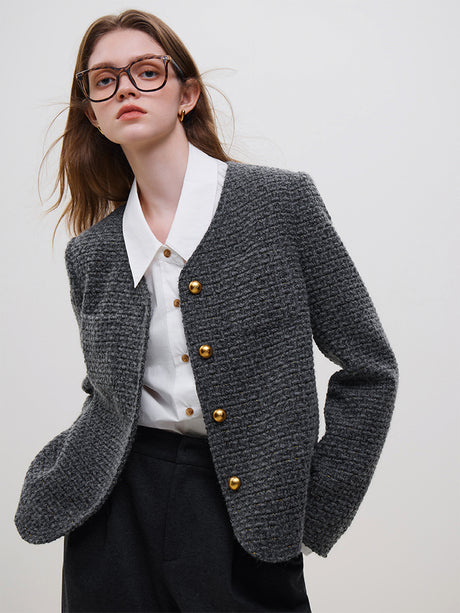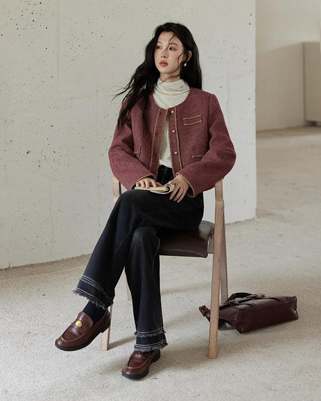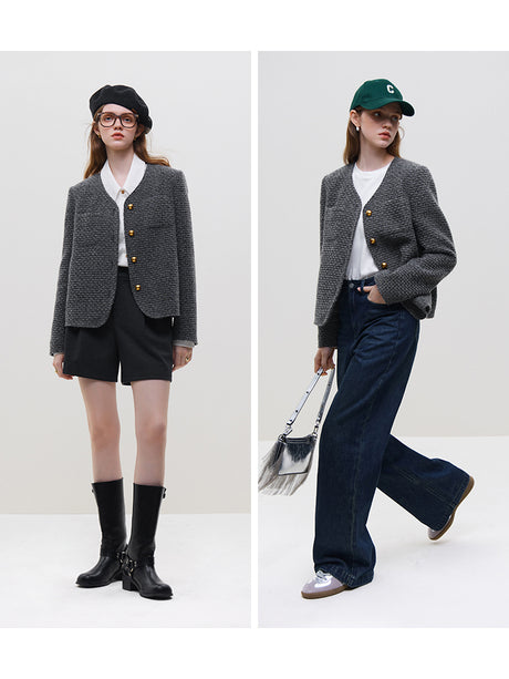 Precio normal $100.99 USDPrecio unitario /AgotadoChaqueta de tweed de lana estilo fran...