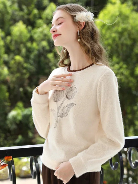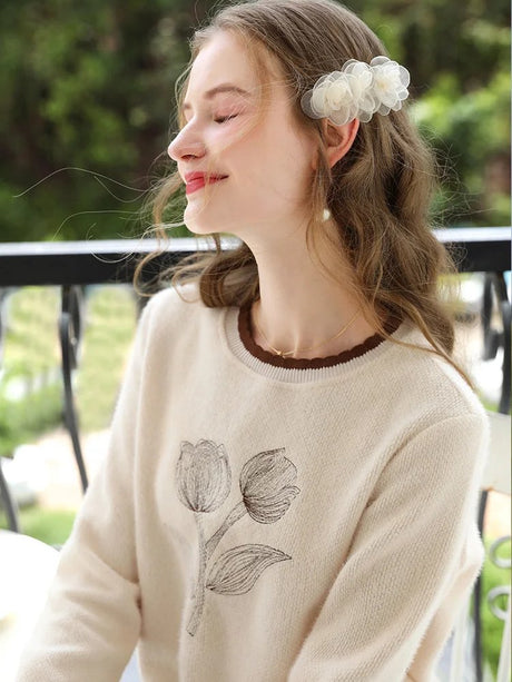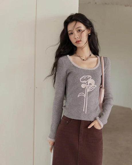 Precio normal $84.99 USDPrecio unitario /AgotadoSuéter con cuello en U y flores borda...