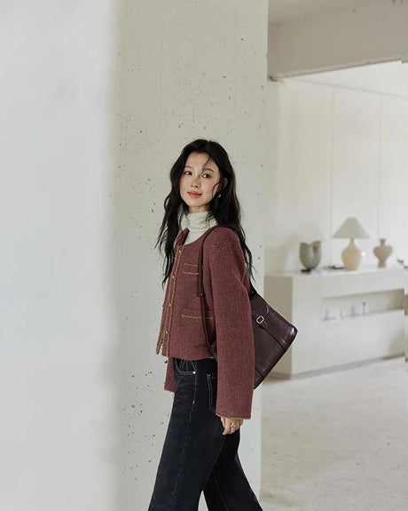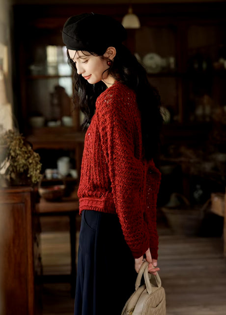 Precio normal $87.99 USDPrecio unitario /AgotadoCárdigan de punto holgado de color ro...