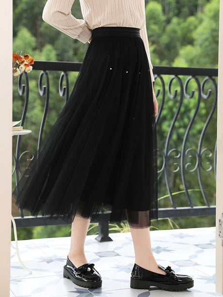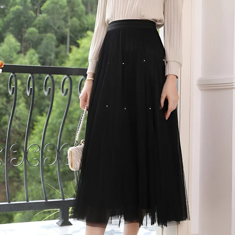 Precio normal $192.99 USDPrecio unitario /AgotadoFalda elegante de malla de talle alto...