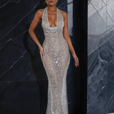 Precio normal $60.99 USDPrecio unitario /AgotadoVestido largo con escote halter, espa...