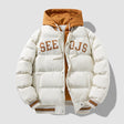 Abrigo de algodón con capucha y letras de moda, chaqueta cálida de invierno con cremallera sólida para hombres y adolescentes