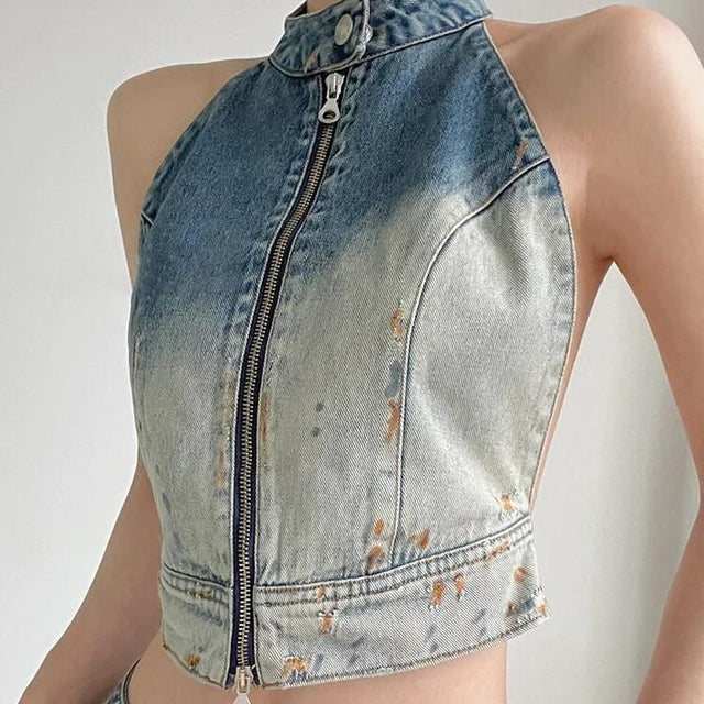 Presentamos nuestro chaleco vaquero sin espalda Hit Color, el epítome de la moda de verano elegante y moderna. Eleva tu guardarropa con esta camiseta sin mangas con hombros descubiertos que combina sin esfuerzo un estilo urbano con un toque de sofisticación.