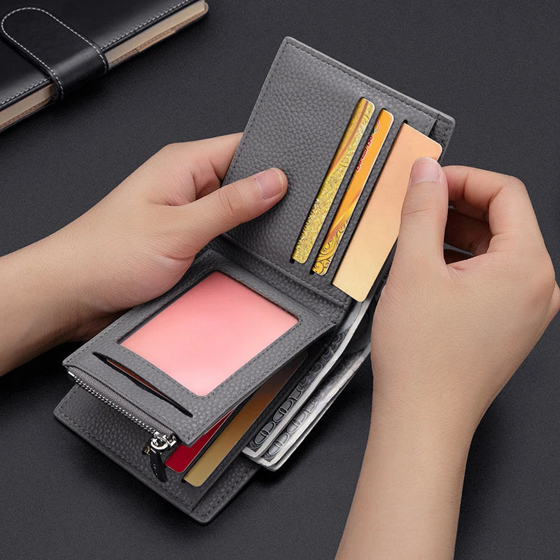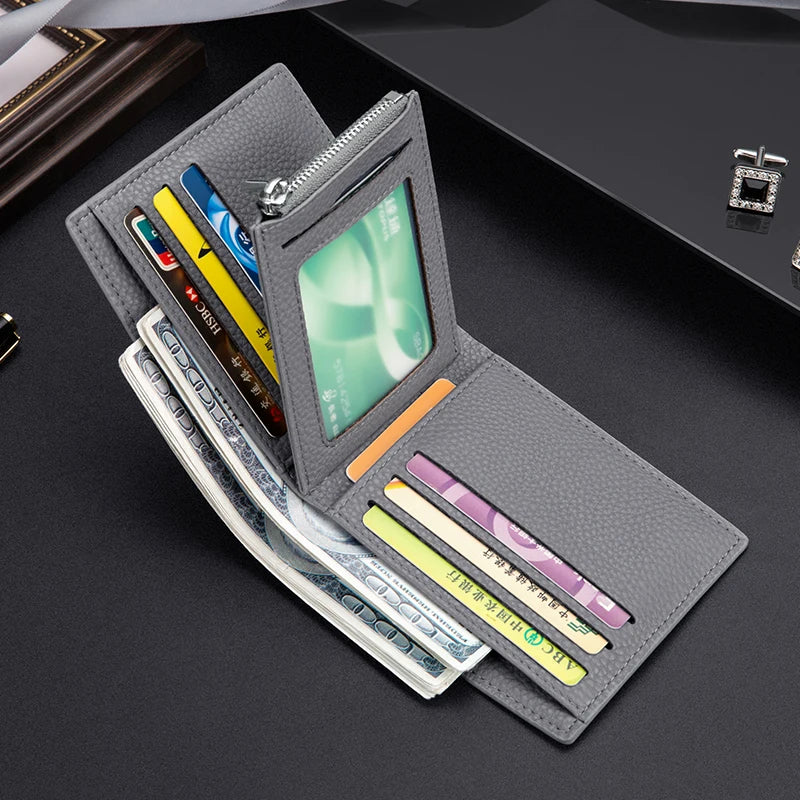 Diseñada para el hombre moderno, esta elegante y estilosa billetera de cuero sintético es perfecta para quienes valoran tanto el estilo como la practicidad. Compacta y liviana, esta billetera cabe fácilmente en cualquier bolsillo sin agregar volumen. Su diseño clásico, inspirado en la moda inglesa, ofrece un aspecto refinado que combina bien con cualquier atuendo de negocios o informal. Ya sea que se dirija a una reunión importante o a una salida informal, esta billetera mantiene sus elementos esenciales organizados y seguros. El rico cuero de PU no solo le da una sensación de lujo, sino que también garantiza durabilidad para el uso diario. Es más que una billetera: es una declaración de sofisticación y clase.
