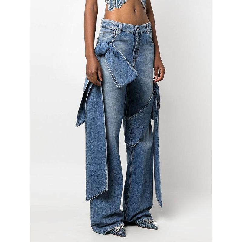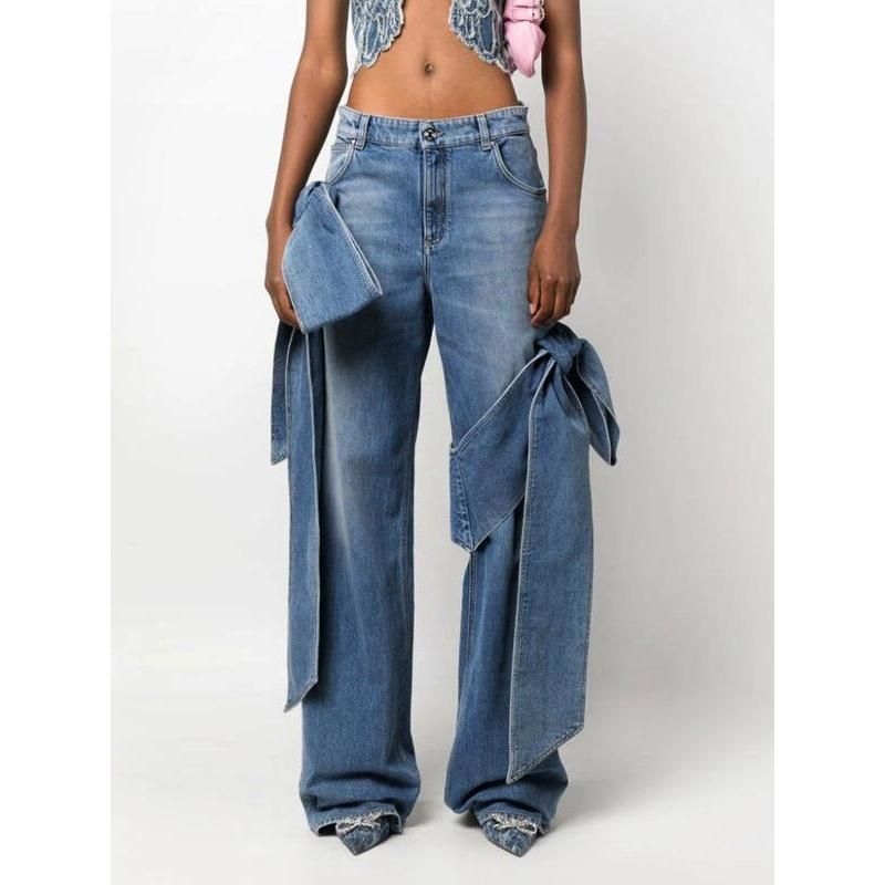 Nuestros jeans casuales con lazo empalmado son perfectos para diversas ocasiones. Ya sea que estés explorando la ciudad, saliendo con amigos o simplemente quieras mostrar tu estilo vanguardista, estos jeans son tu opción versátil.