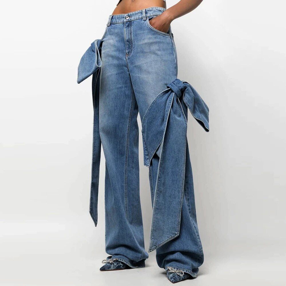 • Diseño único: el detalle del lazo empalmado añade un toque de estilo a estos jeans casuales, haciéndolos destacar entre la multitud.