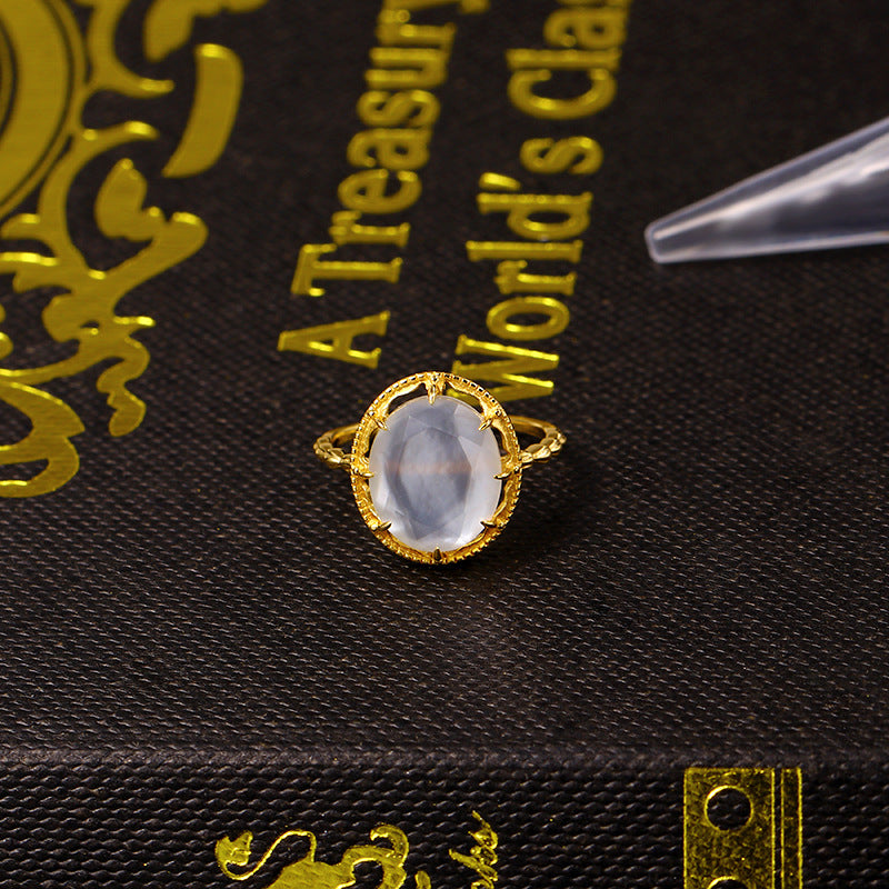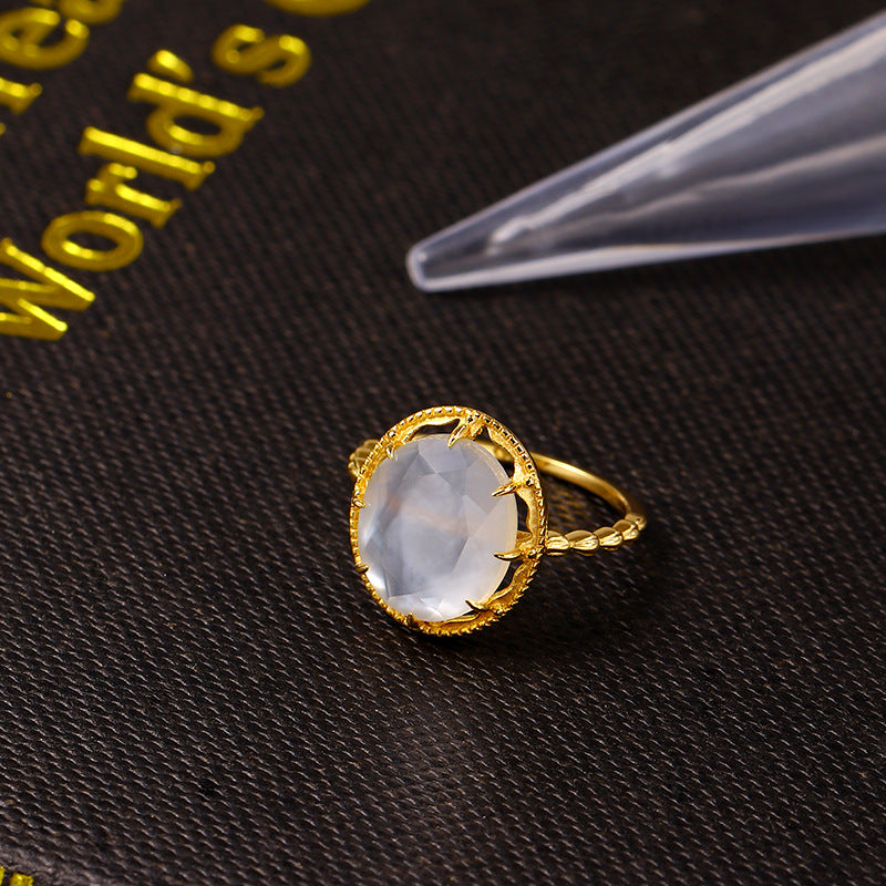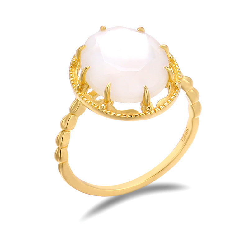 Anillo de piedra de doble capa de cristal de concha de labio blanco